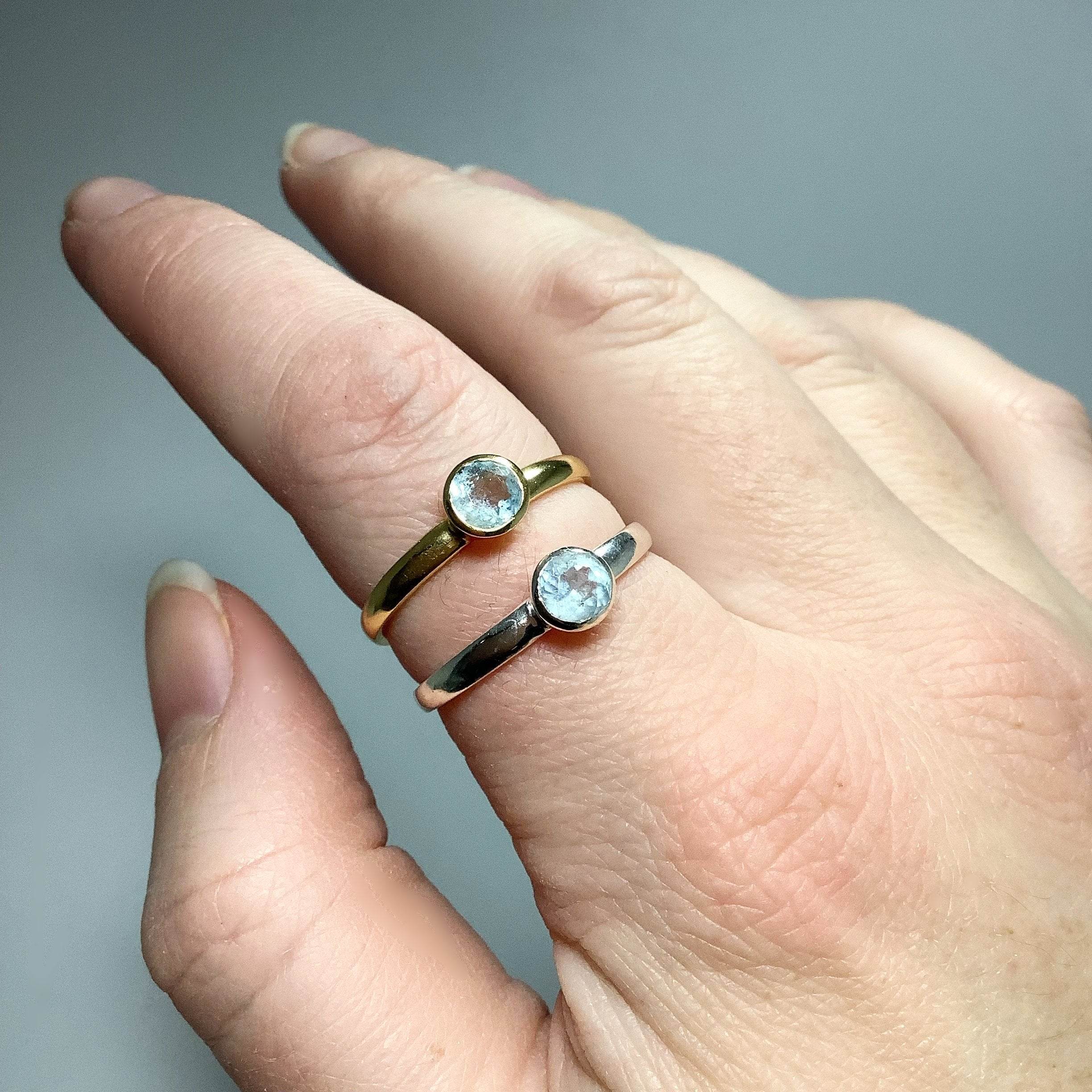 ***Aquamarine ranges in clarity from clear to cloudy. Please email us at [email protected] if you would like to choose between a clear or cloudy aquamarine stone in the ring.