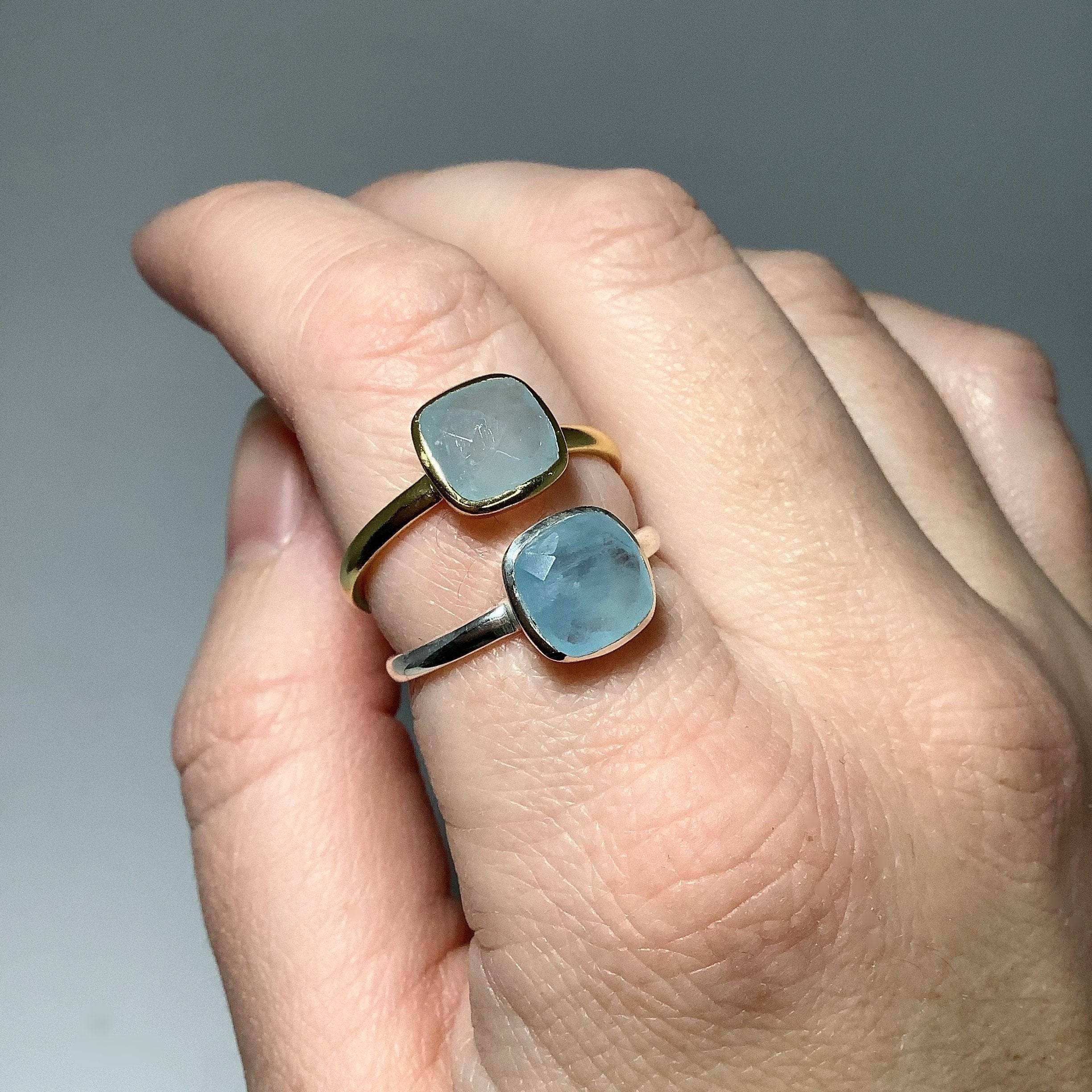 ***Aquamarine ranges in clarity from clear to cloudy. Please email us at [email protected] if you would like to choose between a clear or cloudy aquamarine stone in the ring.