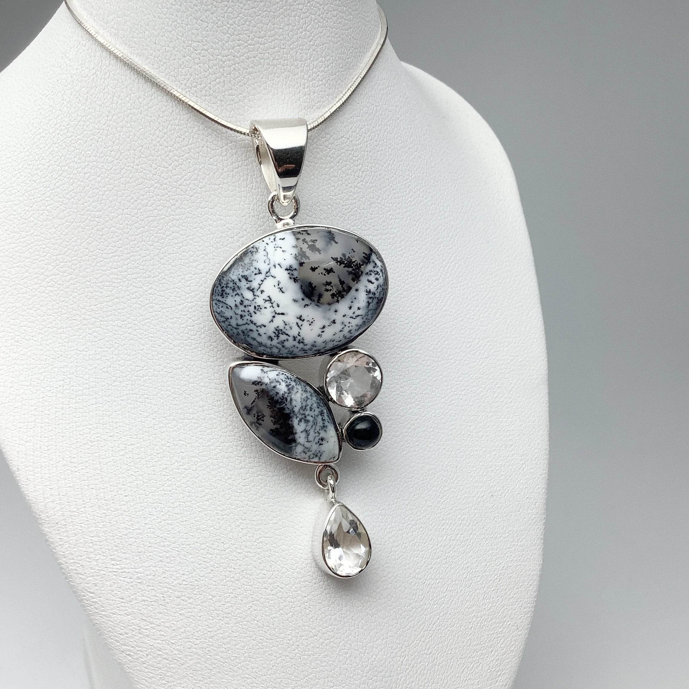 Dendritic Opal, Black Onyx and Clear Quartz Pendant