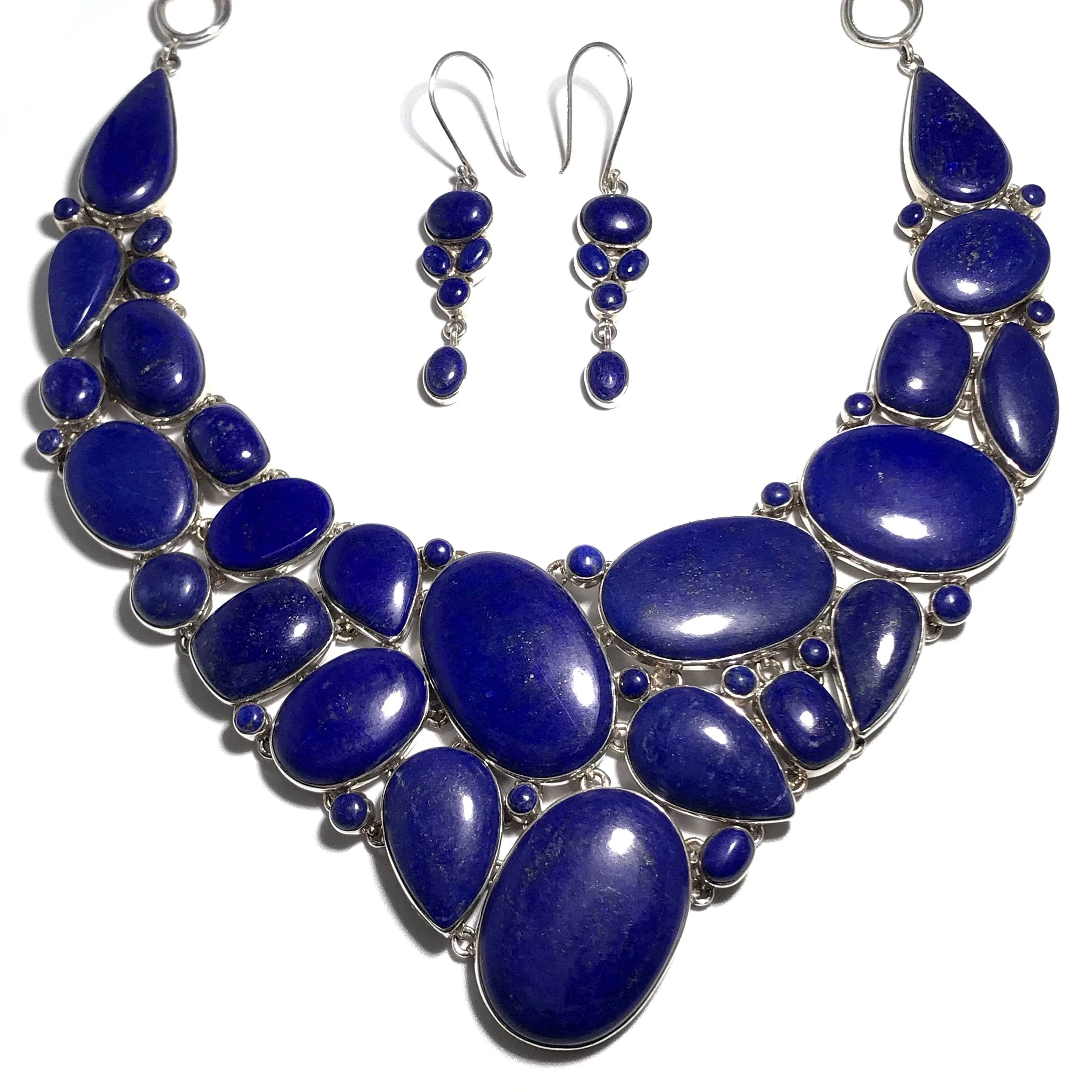 This unique necklace set includes a Lapis Lazuli necklace, as well as a pair of matching dangle earrings.