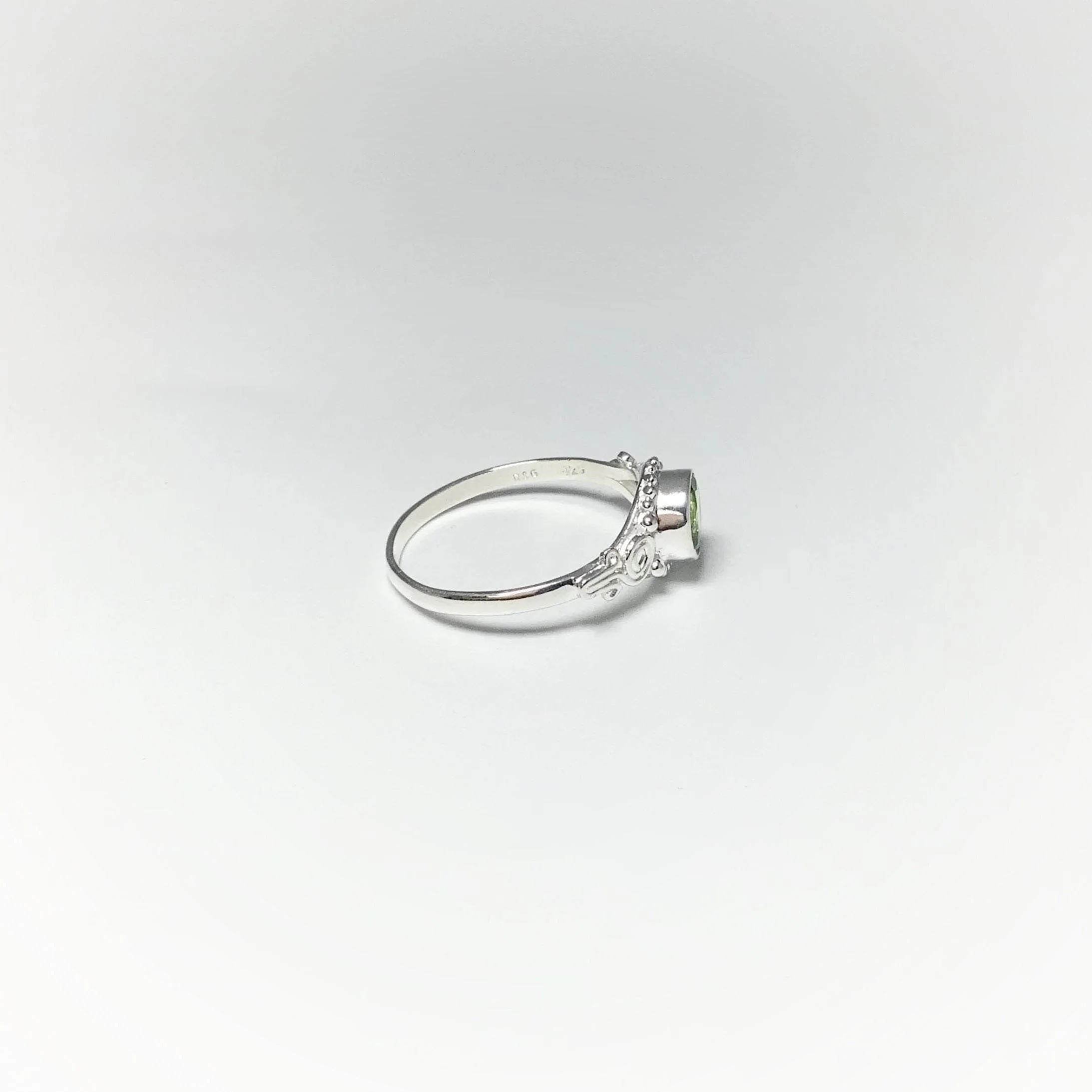 Peridot is a yellowish-green stone that is usually cut and facetted for jewellery. The green color is caused by the iron content of the gemstone, more iron means a richer green color. Sources include Arizona, Hawaii, Mexico, and the Island of Zebirget in the Red Sea. It has long been enjoyed as August's birthstone.