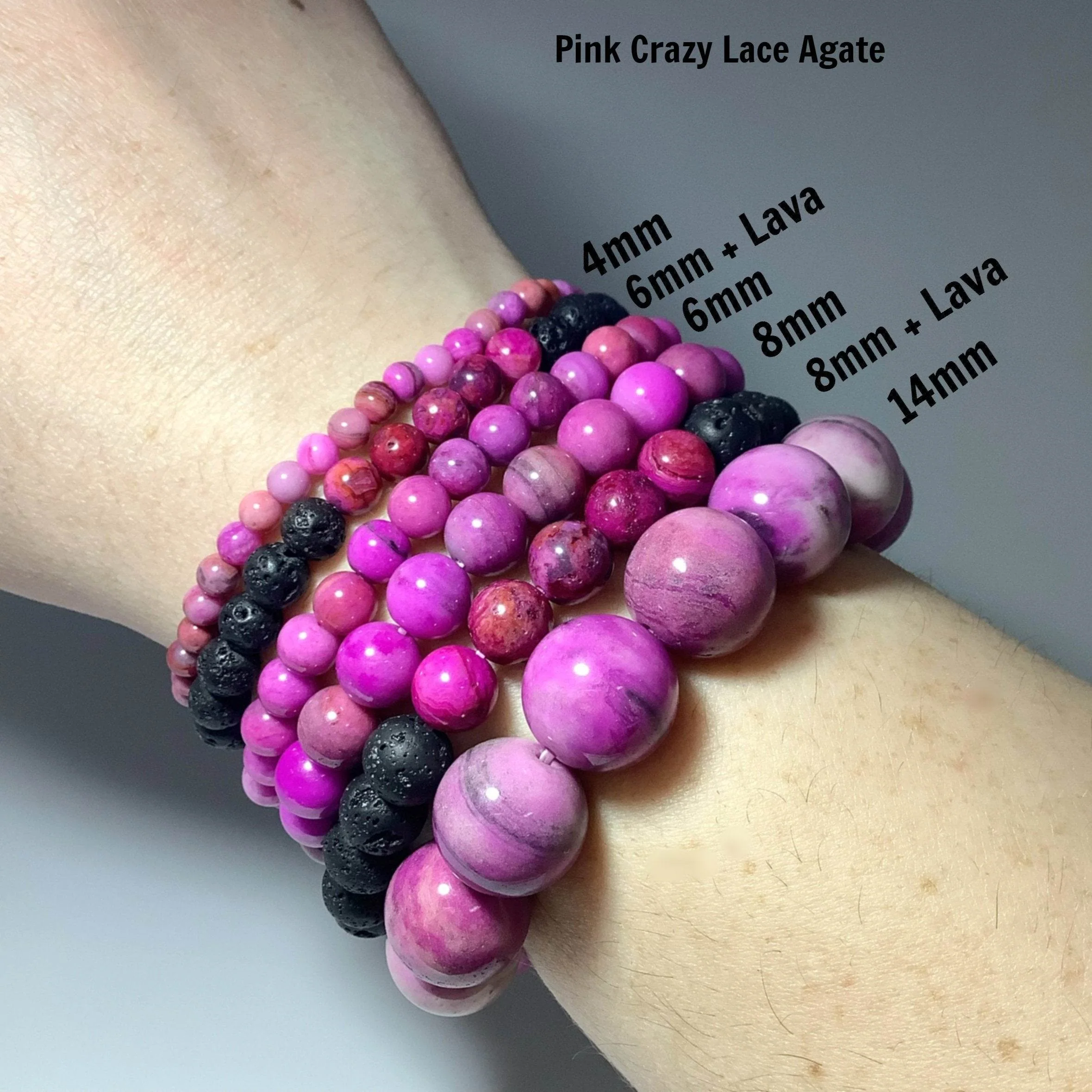 Pink Crazy Lace Agate Beaded Bracelet