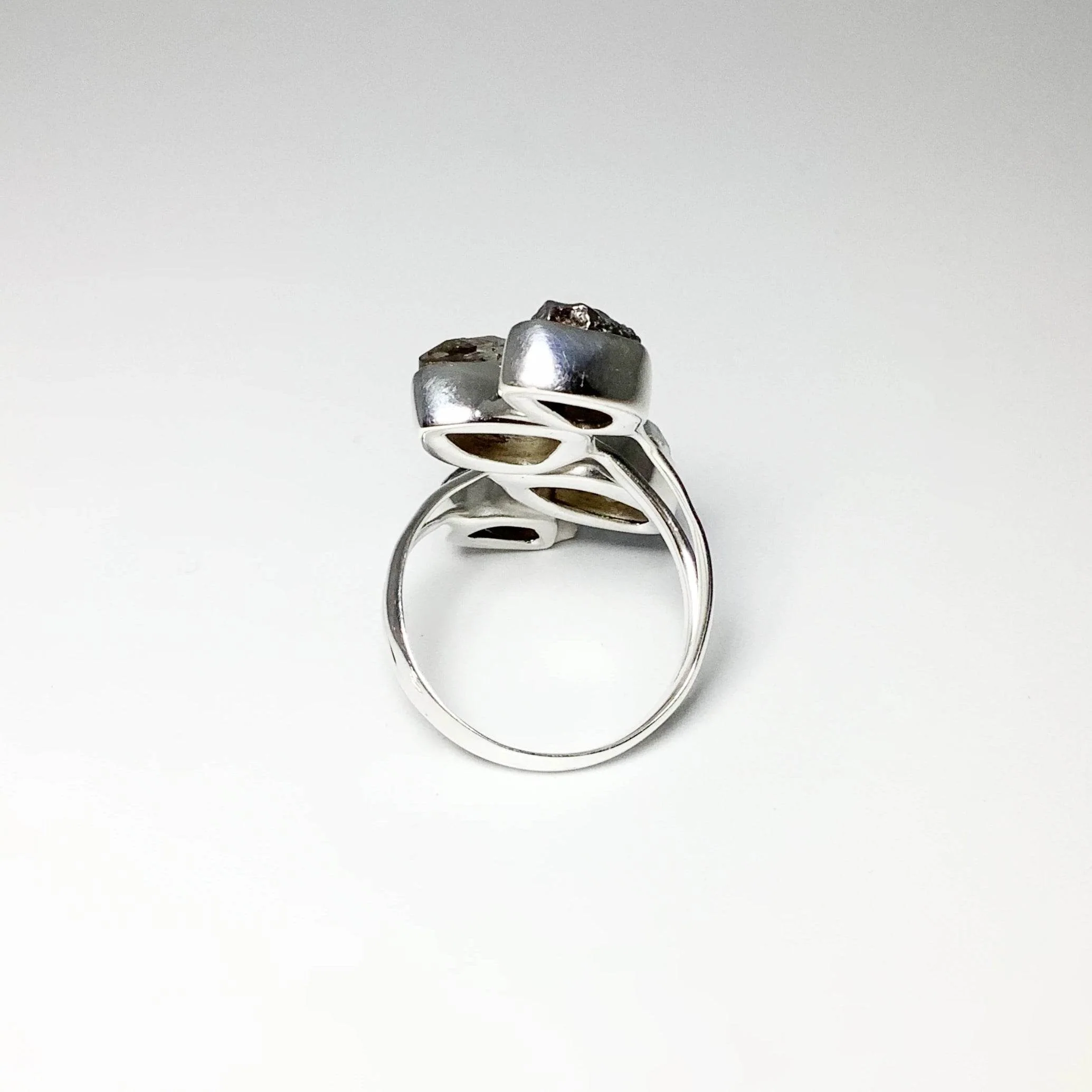 Campo Del Cielo Meteorite and Herkimer Diamond Adjustable Ring